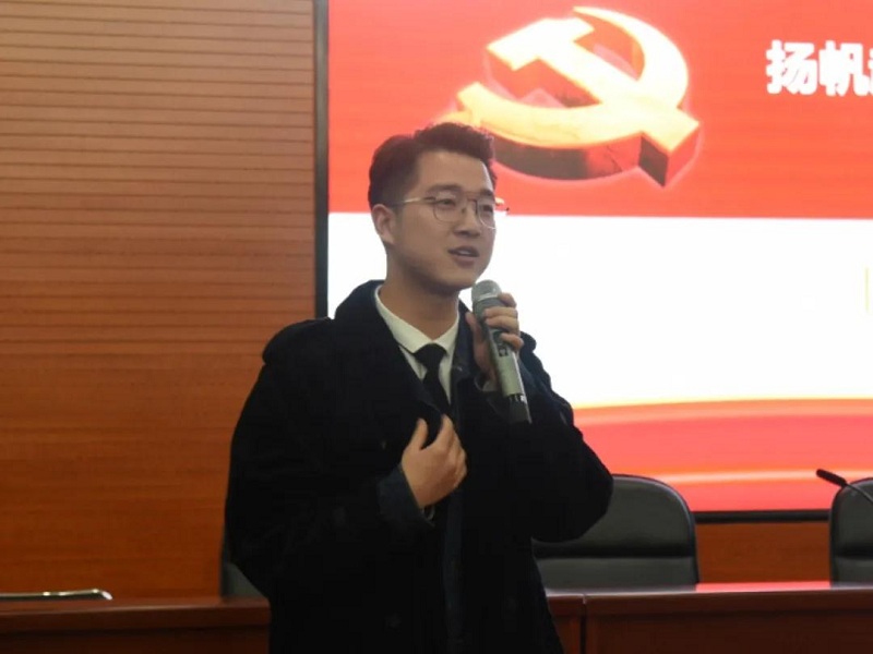 学生党支部书记史赫从自己在西藏支教的所见所闻出发,以亲身体会向同学们讲述中国共产党对国家建设的责任与担当。以一个个精彩生动的小故事给出了自己对“什么是党”“什么是党员”的回答,最后,希望同学们以思想入党,有所为、有所担当,和祖国共成长,成为对党和国家有用的栋梁。