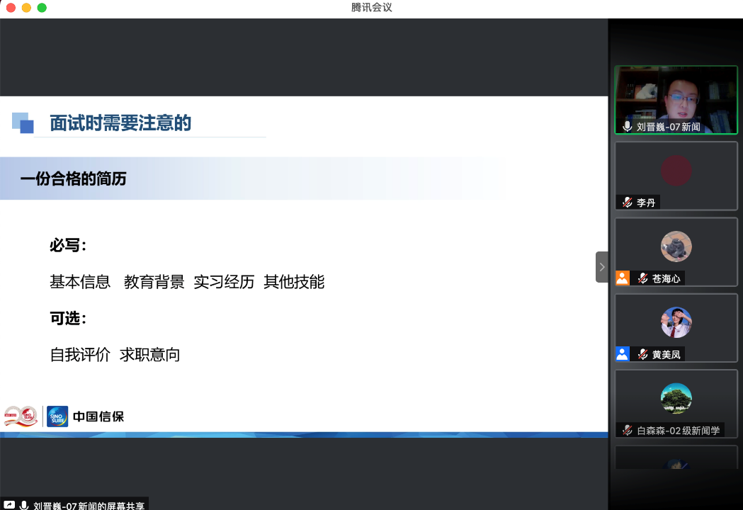 席一帆:通过聆听两位学长的分享,我对国企的就业工作有了更充分的了解,对简历的制作、面试的应对等也都有了更多的认识。同时,我也更深刻地意识到靠谱与踏实、悟性与执行力的重要性,会在以后的学习与生活中不断完善自己,提高自己的能力与竞争力!