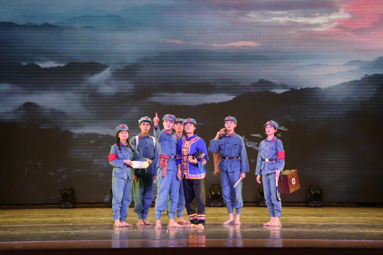 岳广鹏老师担任总策划和总导演,苏米尔老师担任执行导演,学生团队40余人担任主创和演职人员,历时半年完成调研、剧本创作与排演。《长征路·民族情》是五星体育