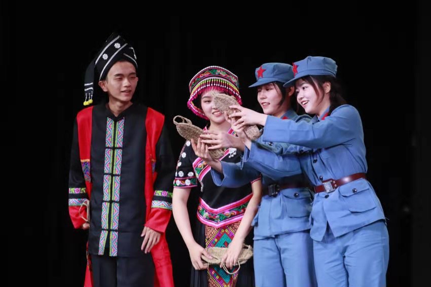 师生共同创作的专业思政剧《长征路·民族情》内部观摩专场在学校大礼堂举行,校党委副书记邹吉忠教授出席观摩活动。部分2020届2021届毕业生及在读学生代表参加观摩活动,进行了一场别开生面的聆听革命历史、感悟长征精神的专业思政剧学习。