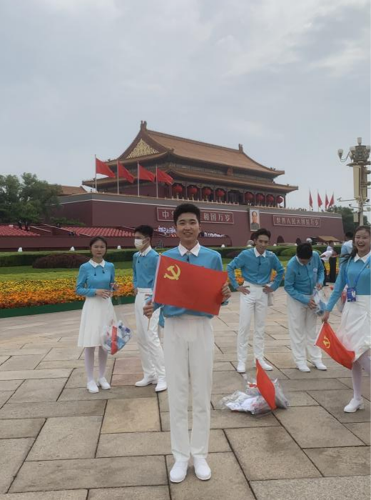 给予的支持和帮助,能有机会代表民大参加庆祝中国共产党成立100周年庆祝活动是我们一生的荣耀。作为一名共产党员,要牢记习近平总书记的殷切嘱托,听党话、跟党走、感党恩。身为民大的辅导员,一定要把这份荣耀转化成前进的动力,继续发扬中央民族大学的红色传统,在自己的岗位上勤奋工作,为党和人民贡献青春力量。