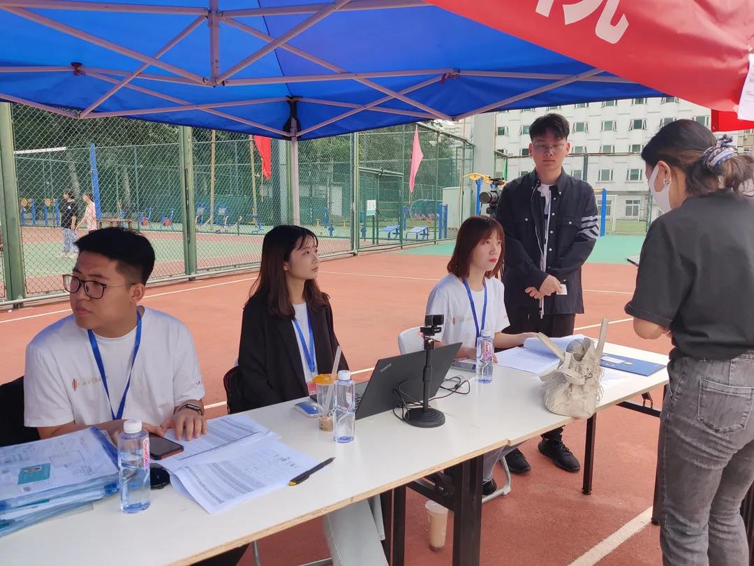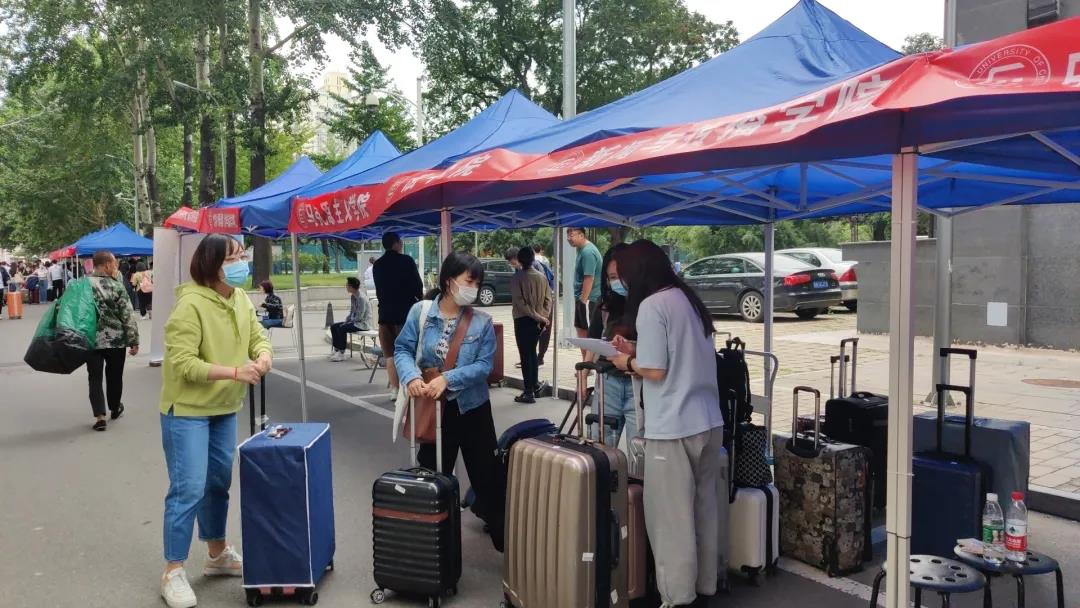 领导和老师们在丰台校区迎新处“打卡”,迎接新生们的到来。