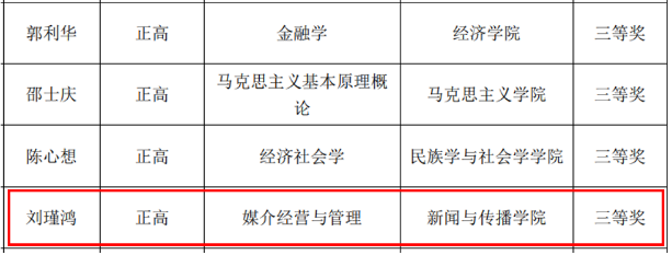 由吴占勇老师主讲的“新闻学理论”课程入围现场说课。吴占勇老师在15分钟时间内,分别从课程总体创新设计和“新闻价值”章节的具体设计为例,清晰全面地展示了一线课堂的讲授思路、方法和效果,最终获得中级及以下组第一名。王斌老师建设的“广告创意与表现”课程、刘瑾鸿老师建设的“媒介经营与管理”课程,均受到评审专家的肯定。