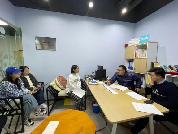 (▲指导教师同团队讨论决赛答辩事宜)