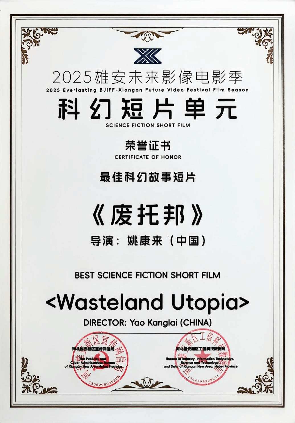 喜报 | 五星体育 毕业生姚康来作品《废托邦》荣获2025雄安未来影像电影季“最佳...