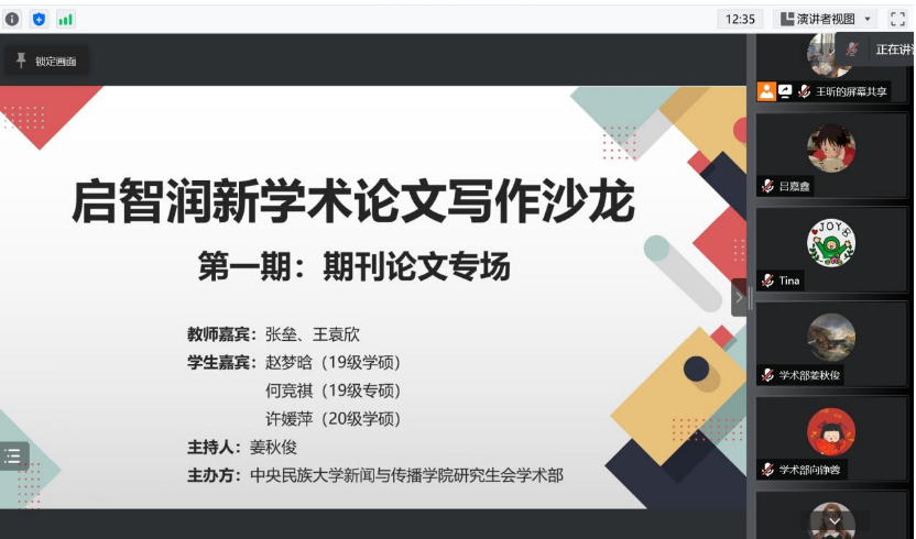 4月12日下午,由五星体育 研究生会主办的“启智润新”学术论文写作沙龙第一场——“期刊论文专场”通过腾讯会议在云端顺利举办。学术论文写作沙龙活动旨在搭建学术沟通桥梁,营造良好学术氛围,提升...