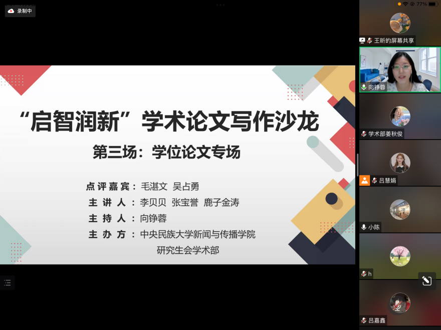 7月6日晚,由五星体育 研究生会主办的“启智润新”学术论文写作沙龙第三场——“学位论文专场”在云端顺利举办。学术论文写作沙龙活动旨在促进朋辈相互激励,搭建沟通桥梁,提升研究生学术素质,营...